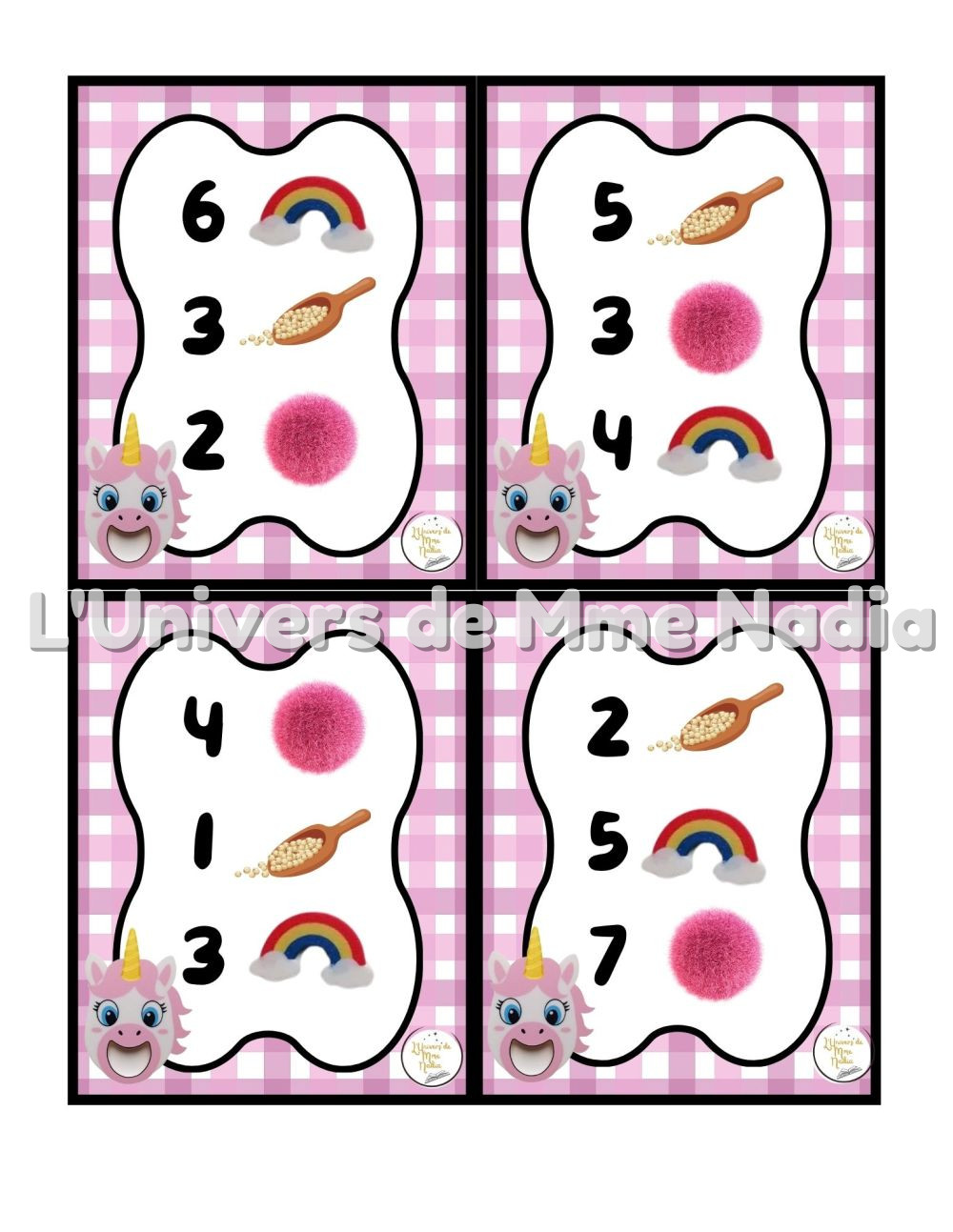 Angélicorne a faim est un jeu complémentaire au plateau J'ai faim, créé par Ébénisterie Steve Genesse. Le jeu comprend 32 petits menus conçus pour nourrir Angélicorne de façon ludique et éducative. Chaque carte propose un menu à réaliser avec différents éléments : • des arcs-en-ciel • des pompons roses, • et la possibilité d'ajouter des cuillères de mélange sensoriel. Les enfants sont invités à : • choisir le bon ingrédient, • mettre la bonne quantité, • et suivre les consignes du menu. Ce jeu permet de travailler les quantités, l'association, l'attention et la motricité fine, tout en ajoutant une dimension sensorielle et amusante. Avec ses 32 cartes toutes différentes, Angélicorne a faim offre une belle variété de défis pour enrichir l'utilisation du plateau J'ai faim.