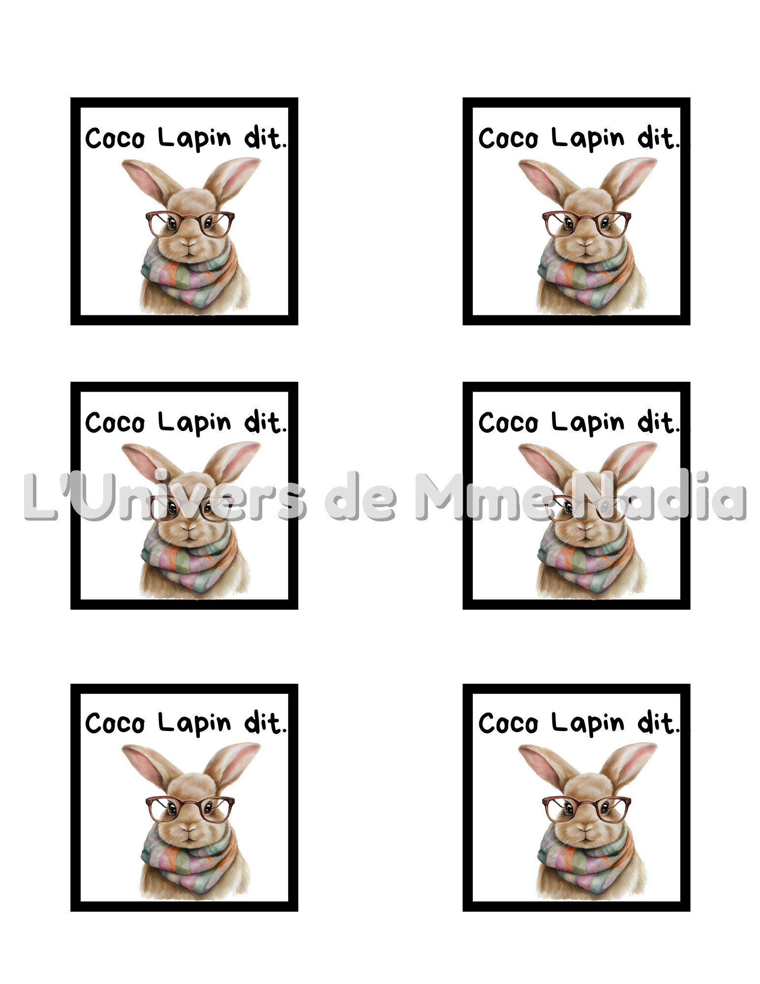 Avec "Coco Lapin Dit", chaque élève a l'opportunité de s'amuser tout en apprenant. Ce matériel est parfait pour animer vos séances de classe et créer une atmosphère joyeuse et dynamique. Imprimer, découper, plastifier et à vous de jouer!