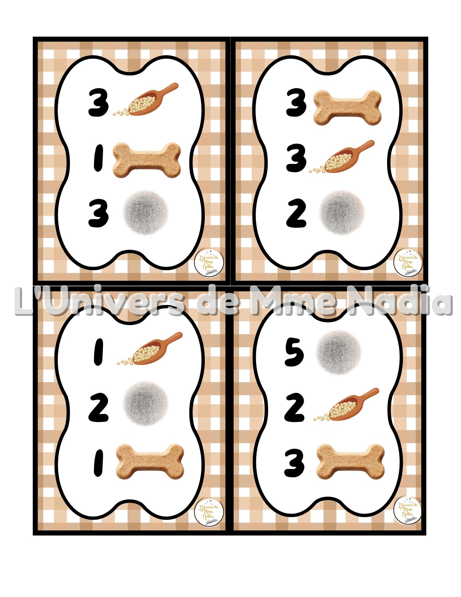 Le chien a faim est un jeu complémentaire au plateau J'ai faim, créé par Ébénisterie Steve Genesse. Le jeu comprend 1 tête de chien, 12 os et 32 petits menus conçus pour nourrir le chien de façon ludique et éducative. Chaque carte propose un menu à réaliser avec différents éléments : • des pompons • des os, • et la possibilité d'ajouter des cuillères de mélange sensoriel. Les enfants sont invités à : • choisir le bon ingrédient, • mettre la bonne quantité, • et suivre les consignes du menu. Ce jeu permet de travailler les quantités, l'association, l'attention et la motricité fine, tout en ajoutant une dimension sensorielle et amusante. Avec ses 32 cartes toutes différentes, Le chien a faim offre une belle variété de défis pour enrichir l'utilisation du plateau J'ai faim.
