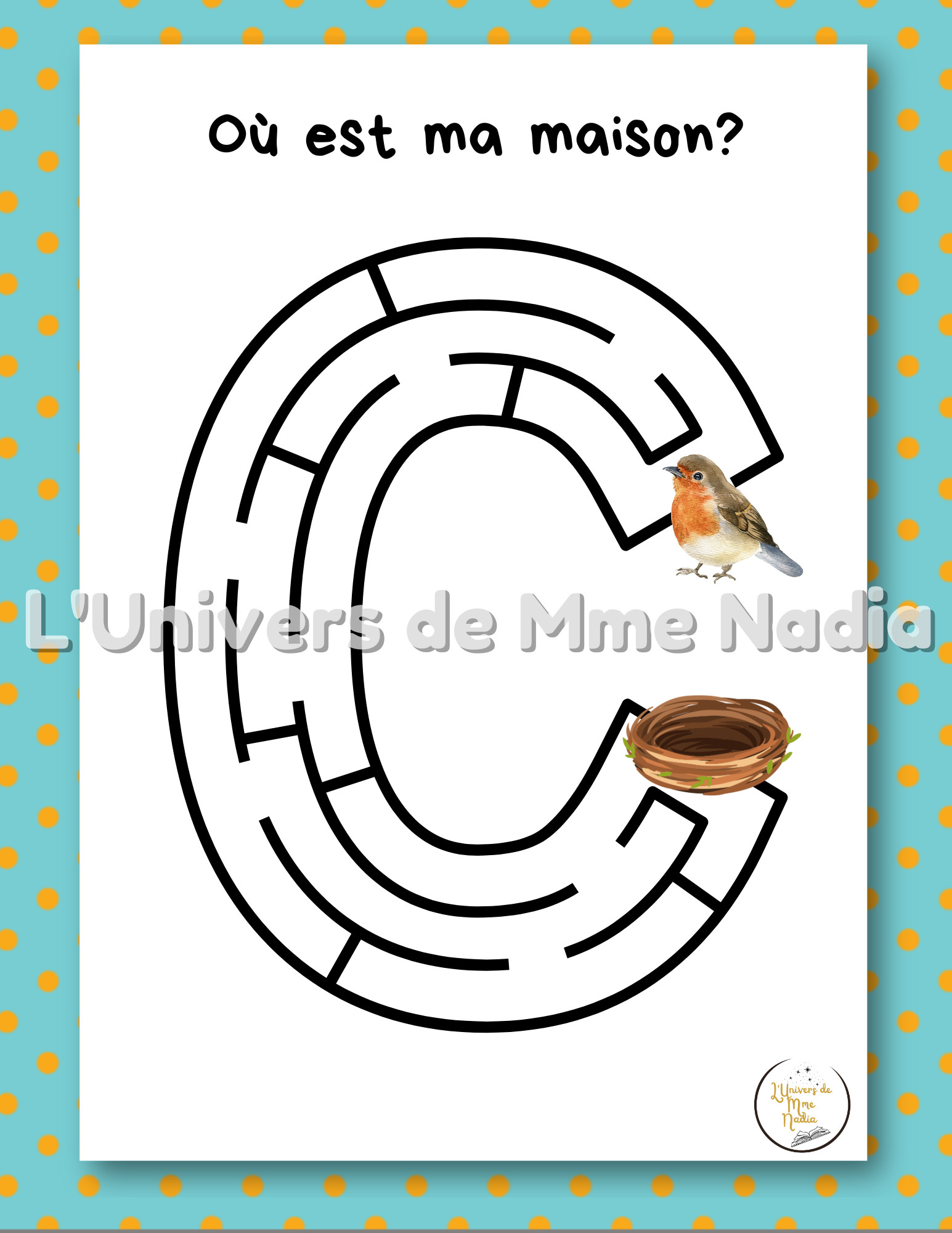 Voici un document pour l'apprentissage des 26 lettres majuscules. Il s'agit d'un atelier de motricité fine. Pour la version plastifiée, l'élève aide l'animal a retrouvé sa maison en lui traçant le chemin avec un crayon effaçable à sec. Pour la version papier sous forme de cahier, l'élève aide l'animal a retrouvé sa maison en lui traçant le chemin avec le crayon de votre choix.