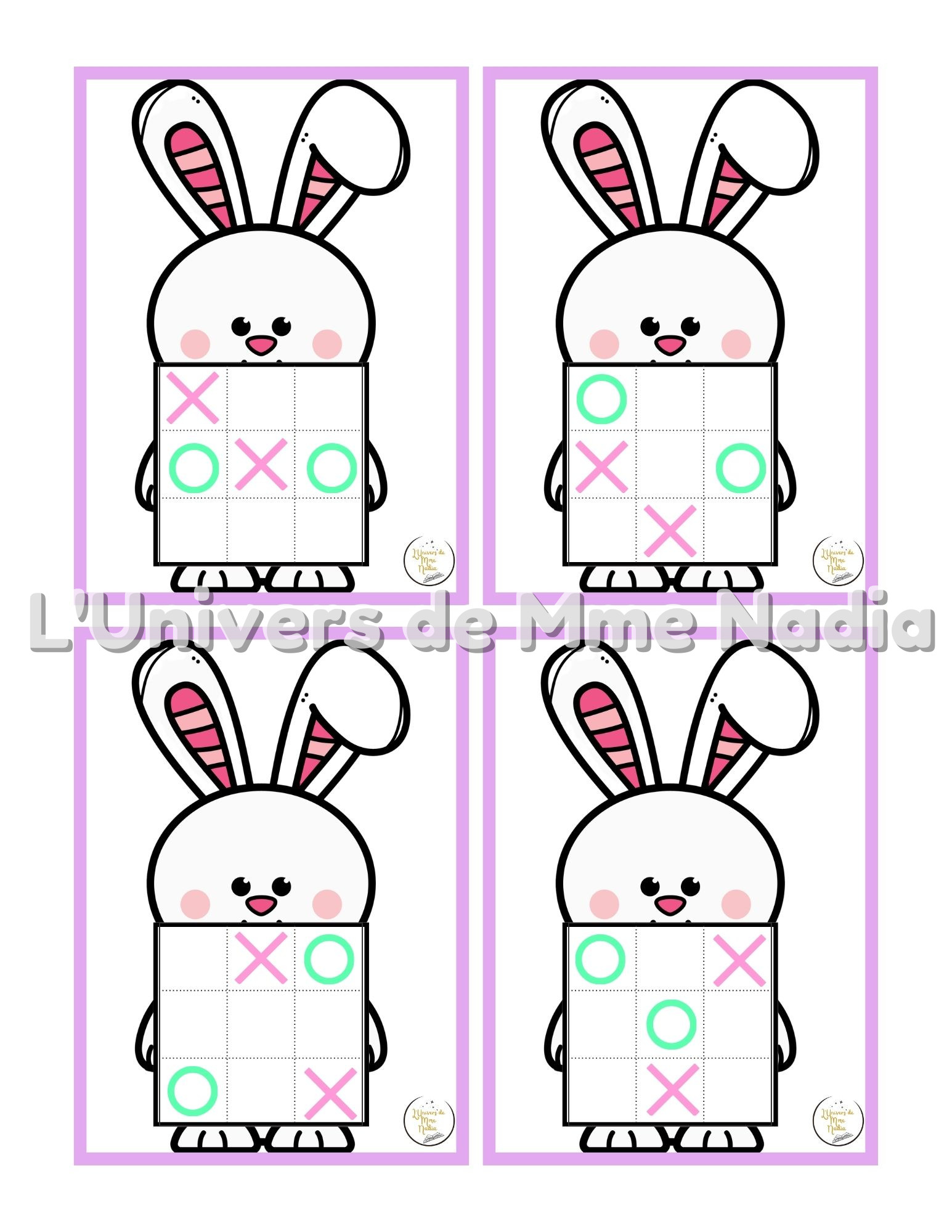 Vous préparez votre thème de Pâques ? Découvrez 20 fiches de jeux amusants qui accompagnent le Tic-Tac-Toe lapin de Pâques 🐰acheté au Dollarama. Placez les X et les O au bon endroit en suivant le modèle proposé. Un excellent moyen de s'amuser tout en s'exerçant à la logique et à la concentration !