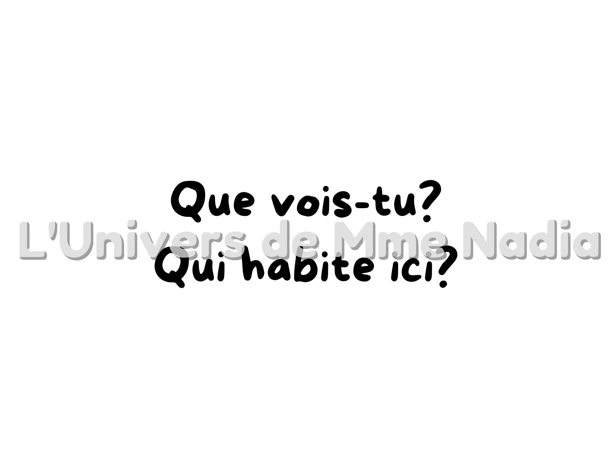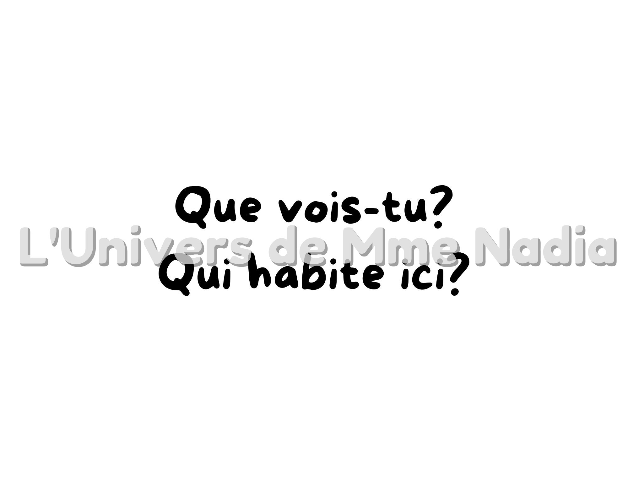 Qui habite ici? est un kamishibaï interactif où les enfants observent une image et répondent aux questions: Que vois-tu? Qui habite ici?. À chaque page, ils découvrent un logis (niche, terrier, nid...) puis l'animal qui y habite. Une façon amusante et participative d'apprendre le nom des animaux et leur habitat!