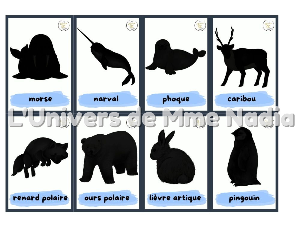 Ce document comprend 58 mots étiquettes sur le thème du monde polaire et de l'hiver, présentés en double exemplaire : la version standard et la version en ombre, pour un total de 116 cartes. Ces cartes sont parfaites pour :
