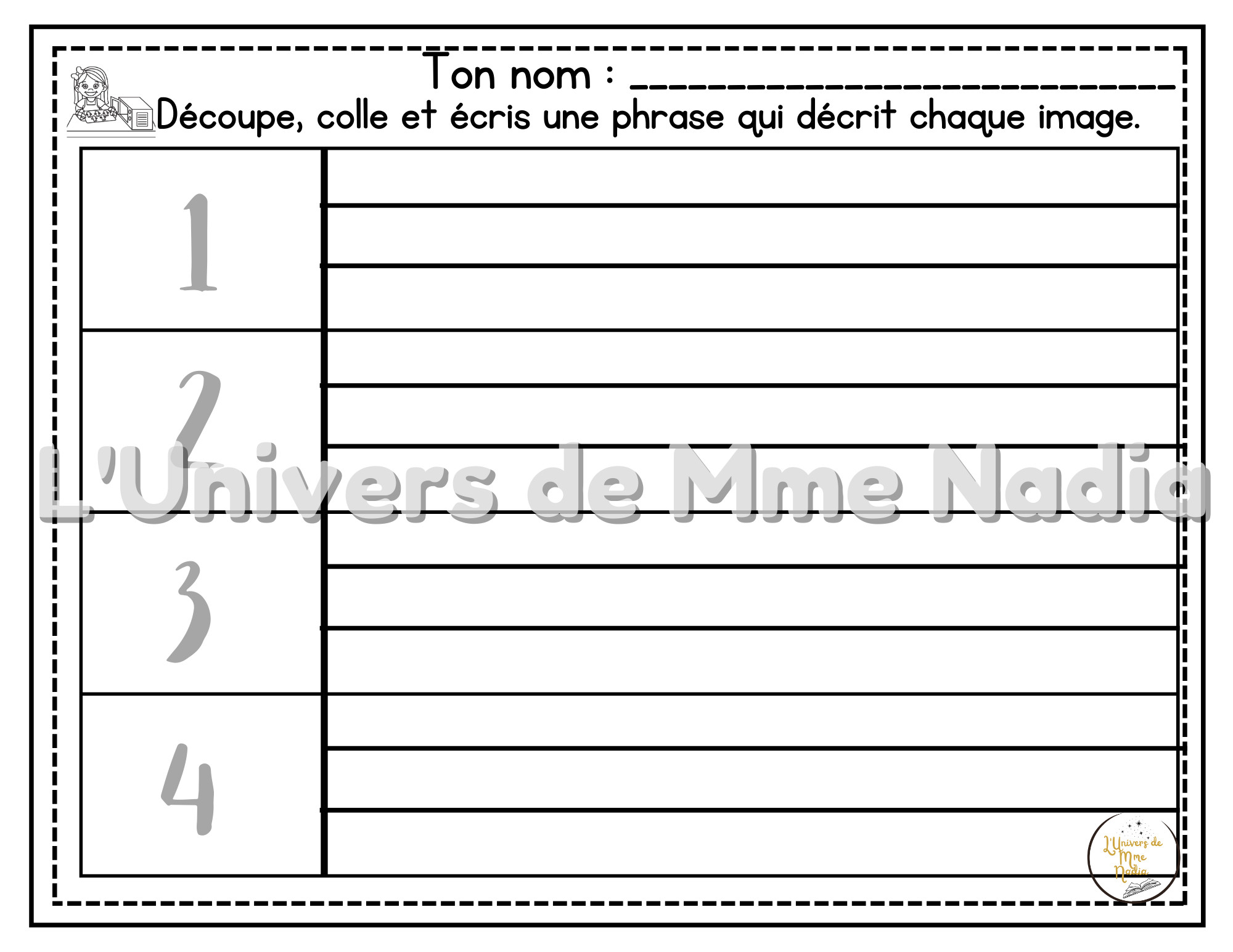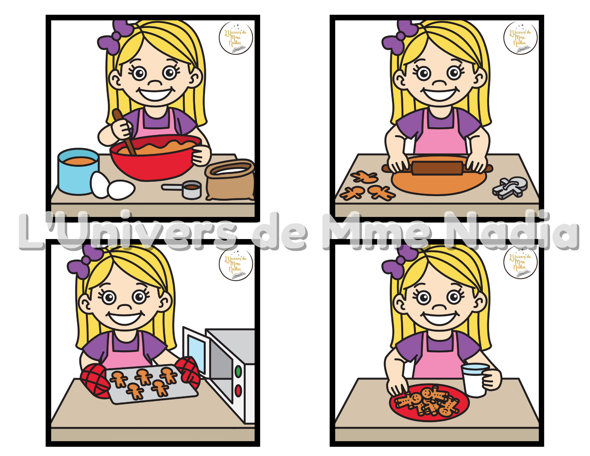 • Version avancée (grands) : on découpe, on colle les images dans le bon ordre et on écrit une phrase pour décrire chaque étape.