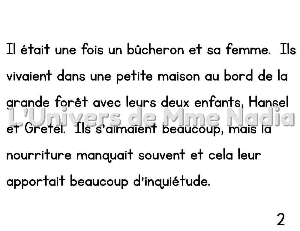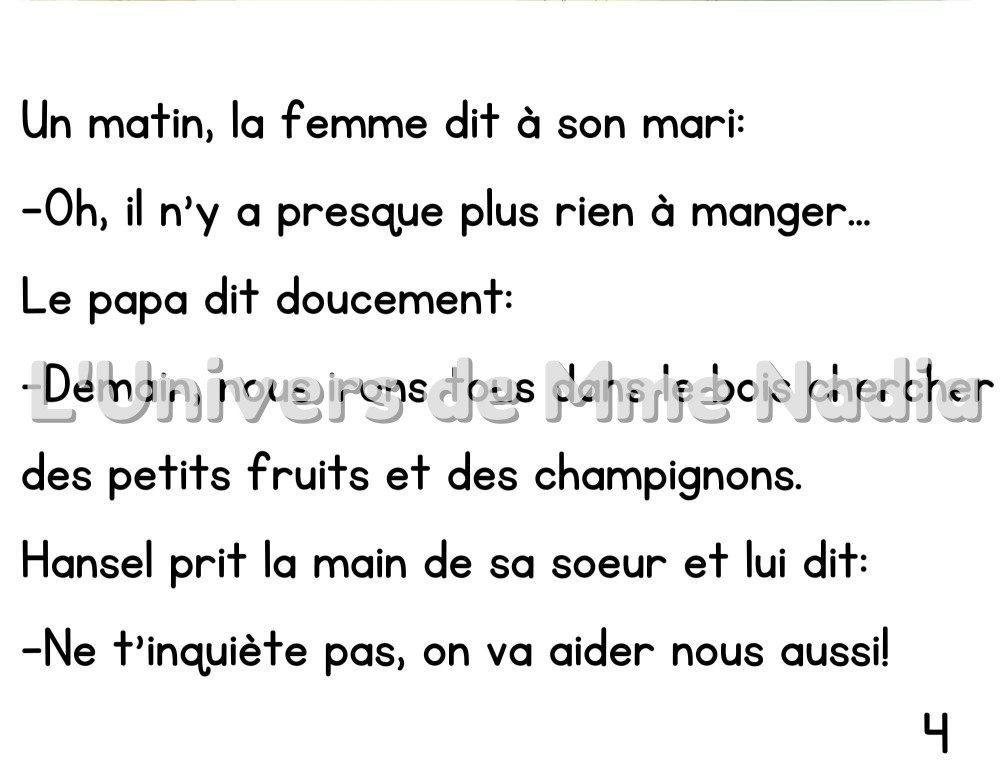 Voici l’histoire classique d'Hansel et Gretel. Hansel et Gretel sont un frère et une sœur qui vivent avec leurs parents près d’une grande forêt. Un jour, alors qu'ils se promènent dans le bois avec leurs parents pour cueillir des petits fruits, les deux enfants perdent leur chemin. Ils trouvent alors une étrange maison faite de pain d’épices et de sucreries. Mais la maison appartient à une méchante sorcière qui veut les capturer ! Grâce à leur courage et à leur ruse, Hansel et Gretel réussissent à s’enfuir et retrouvent enfin le chemin de leur maison, où les attend un avenir plus heureux.