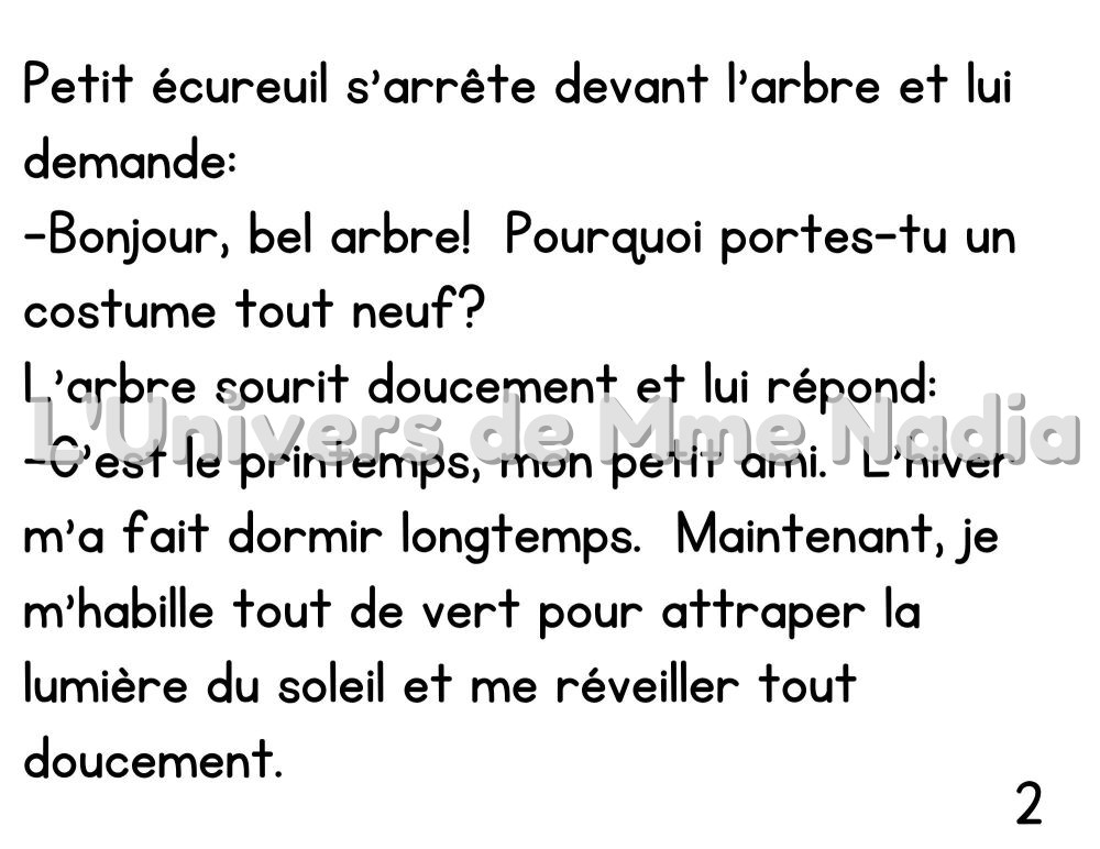 Voici l’histoire d’un arbre qui vit au rythme des saisons. Au printemps, il se réveille et revêt son costume vert tendre. En été, il s’habille de fleurs et de fruits. En automne, ses feuilles changent de couleur avant de s’envoler. Et en hiver, il se repose sous son manteau de neige. Un petit écureuil curieux vient lui parler et découvre, au fil du temps, pourquoi l’arbre change ainsi. C’est une histoire qui nous rappelle que la nature se transforme sans cesse, et que chaque saison a sa beauté.