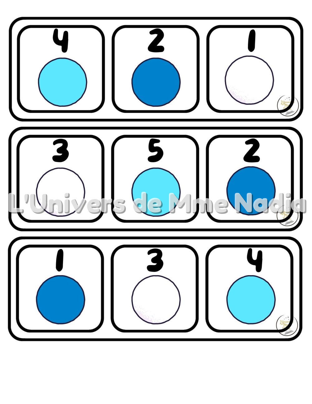 • une quantité (chiffres de 1 à 5),