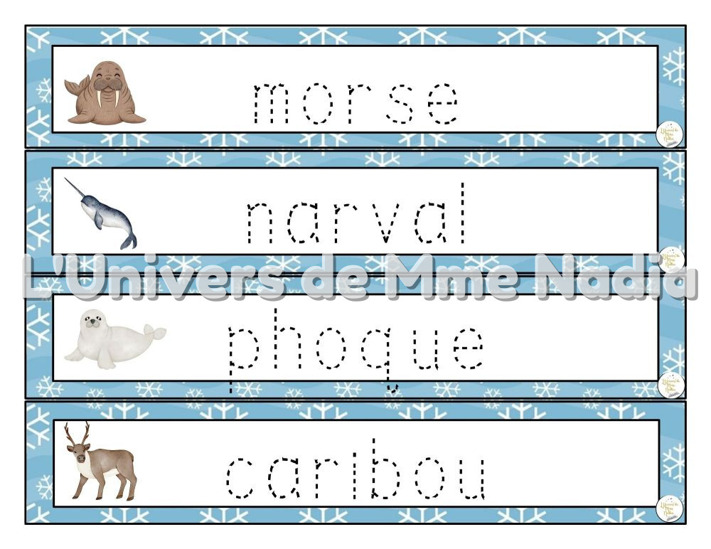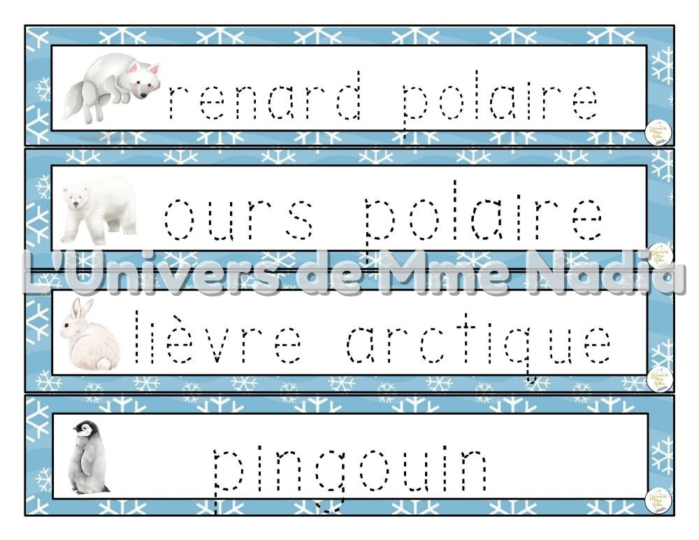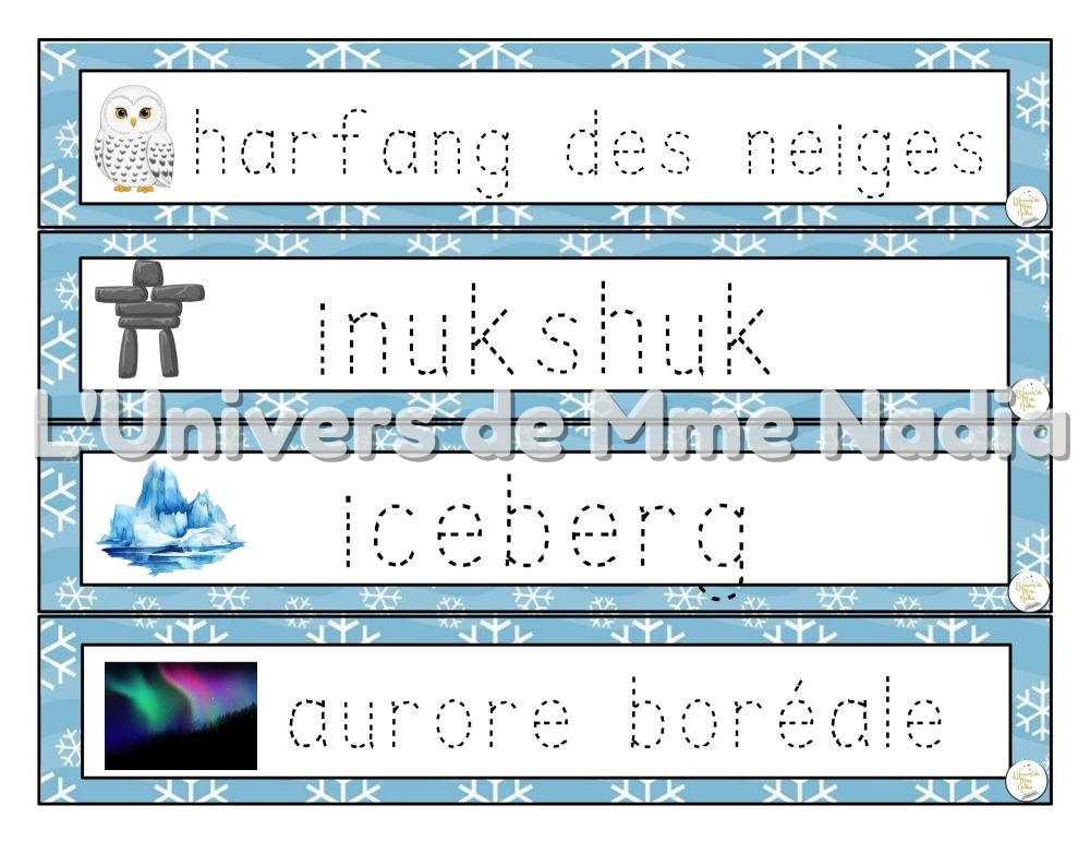 Mots-étiquettes à tracer - Monde polaire et hiver
