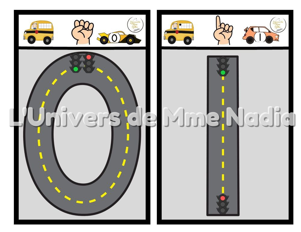 Pour accompagner leur nouveau plateau Feu de circulation, Ébénisterie Steve Genesse m'a demandé de faire une version en noir et blanc de Sur la route des nombres. Chaque nombre est représenté sous forme de route (avec départ et arrêt), et les enfants peuvent : tracer avec leur doigt, utiliser un crayon effaçable, ou encore suivre la route avec une petite voiture !