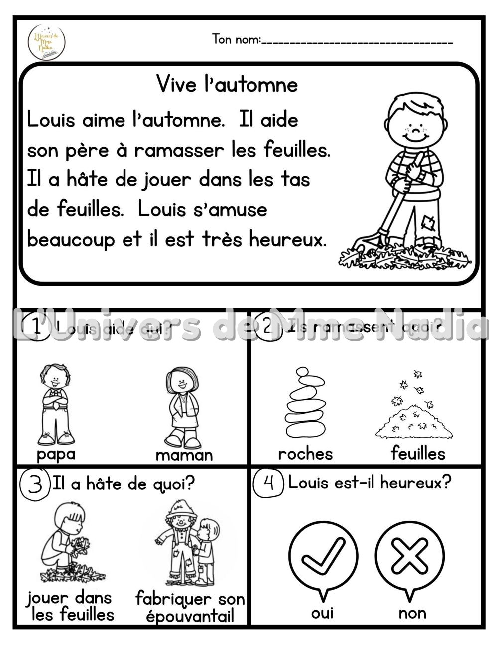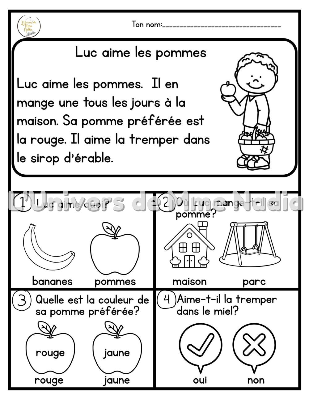 • En 1re et 2e année, les élèves plus avancés peuvent lire l’histoire et répondre aux questions de façon autonome.