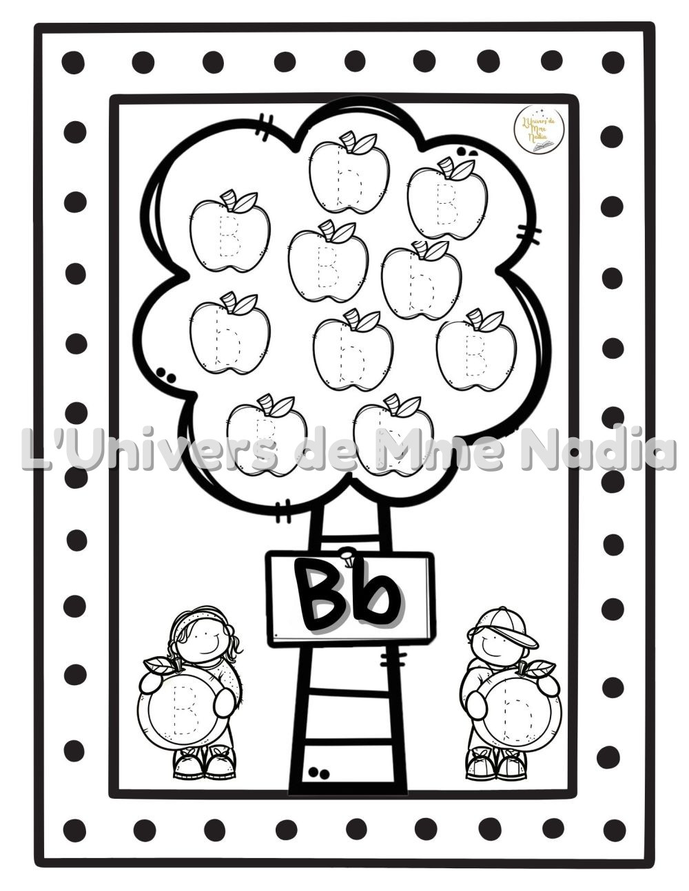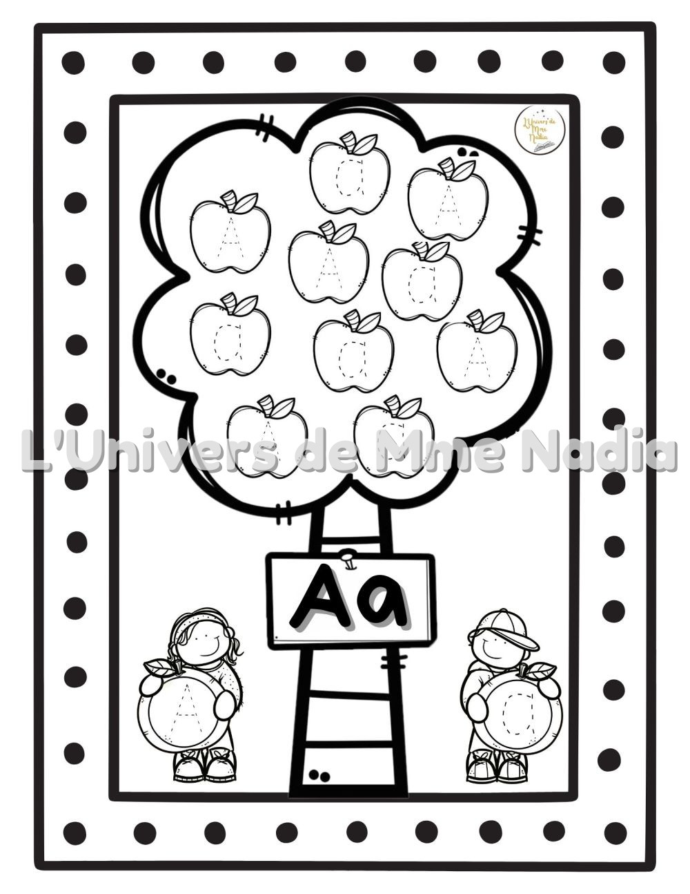 Bienvenue dans Le verger des lettres! Dans ce document, les enfants partent à la découverte de l’alphabet à travers 26 pommiers, chacun dédié à une lettre, de A jusqu’à Z. Chaque pommier porte 10 pommes, dans lesquelles se cachent des lettres à tracer.