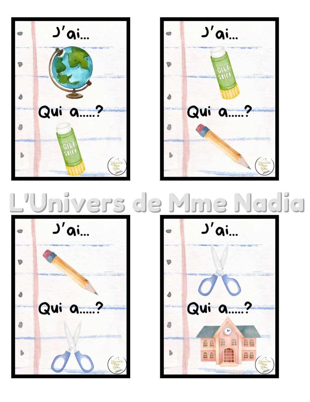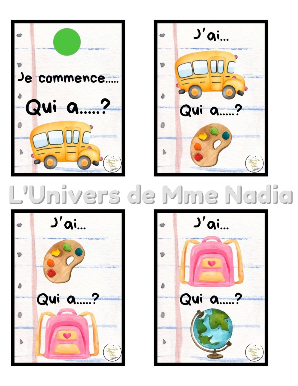 NOUVEAUTÉ GRATUITE pour la rentrée ! Découvrez mon tout nouveau jeu « J’ai… Qui a…? » – Spécial ``La rentrée scolaire``. Un jeu ludique et éducatif qui sert à: