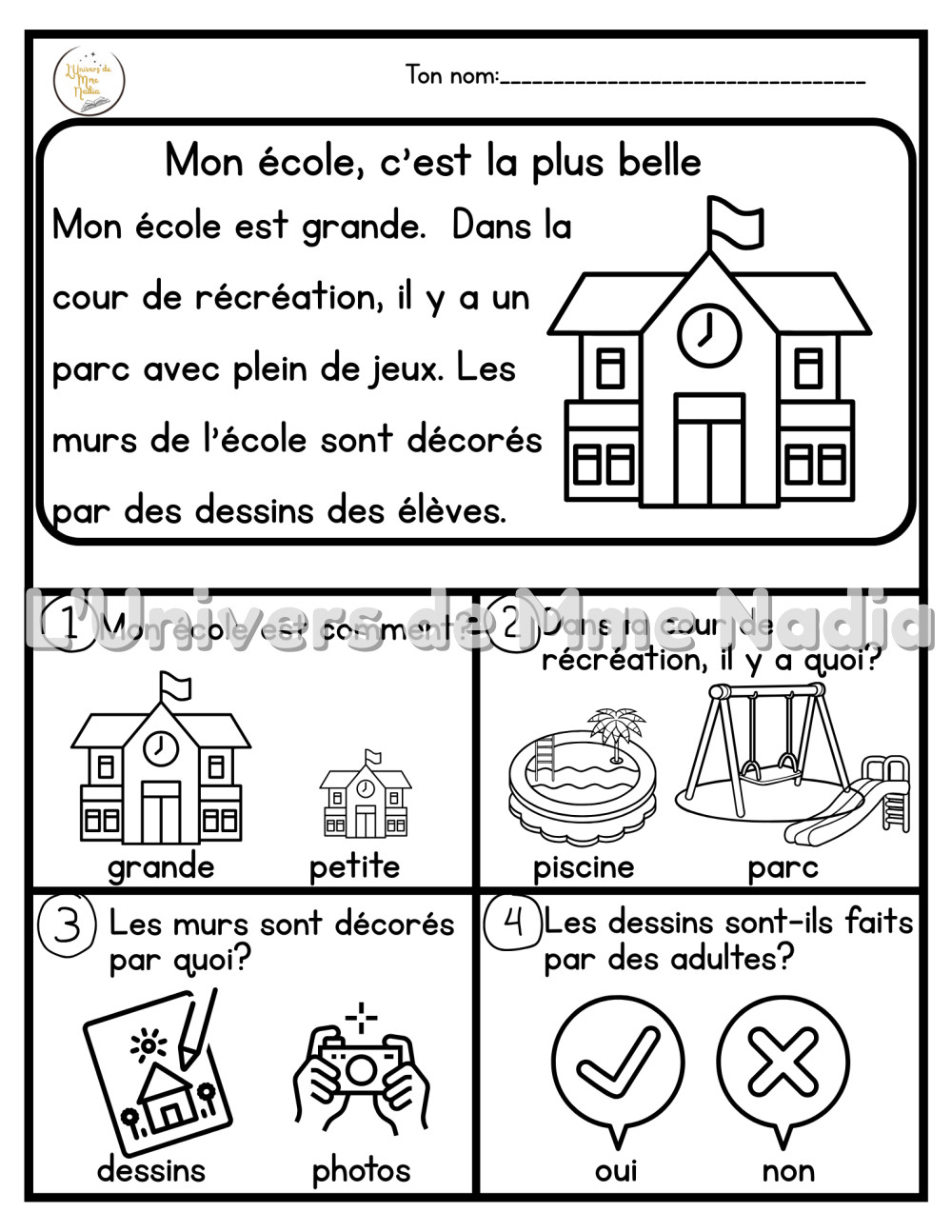 • En 2ᵉ année, les élèves lisent seuls et répondent eux-mêmes aux 4 questions.