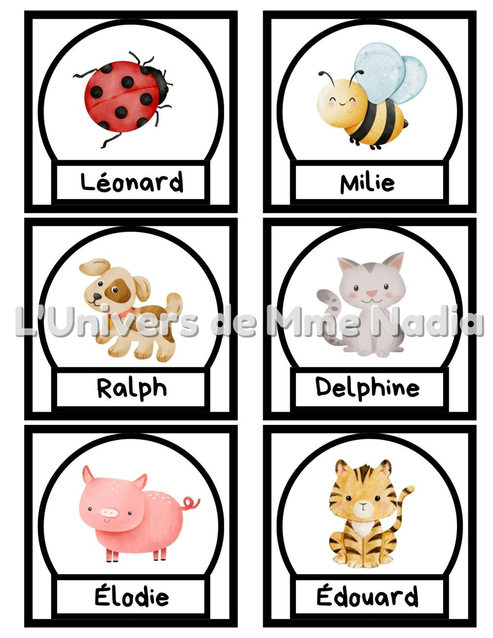 • Animal avec espace pour le prénom