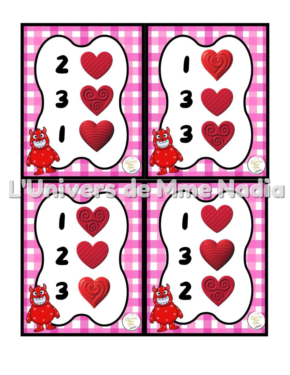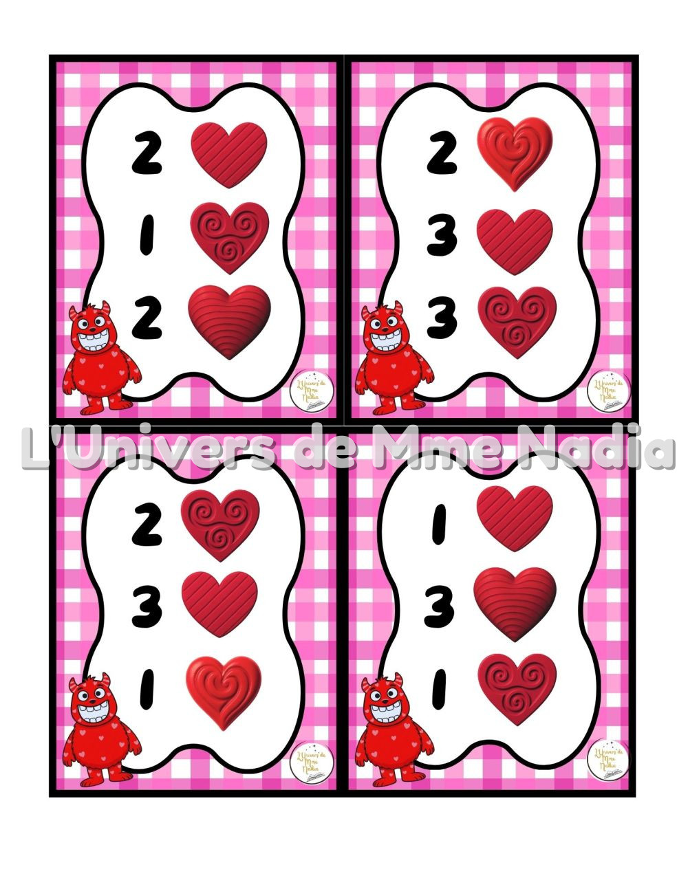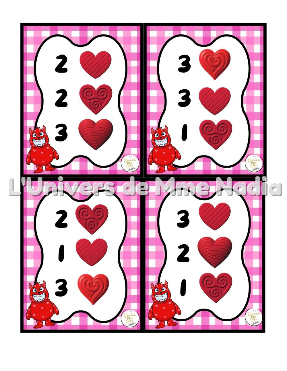 Cro-Coeur a faim est un jeu complémentaire au plateau J'ai faim, créé par Ébénisterie Steve Genesse. Le jeu comprend 32 petits menus conçus pour nourrir Cro-Cœur de façon ludique et éducative. Chaque carte propose un menu à réaliser avec différents éléments : • des cœurs de différentes sortes, • des pompons rouges, • et la possibilité d'ajouter des cuillères de mélange sensoriel. Les enfants sont invités à : • choisir le bon ingrédient, • mettre la bonne quantité, • et suivre les consignes du menu. Ce jeu permet de travailler les quantités, l'association, l'attention et la motricité fine, tout en ajoutant une dimension sensorielle et amusante. Avec ses 32 cartes toutes différentes, Cro-Cœur a faim offre une belle variété de défis pour enrichir l'utilisation du plateau J'ai faim.