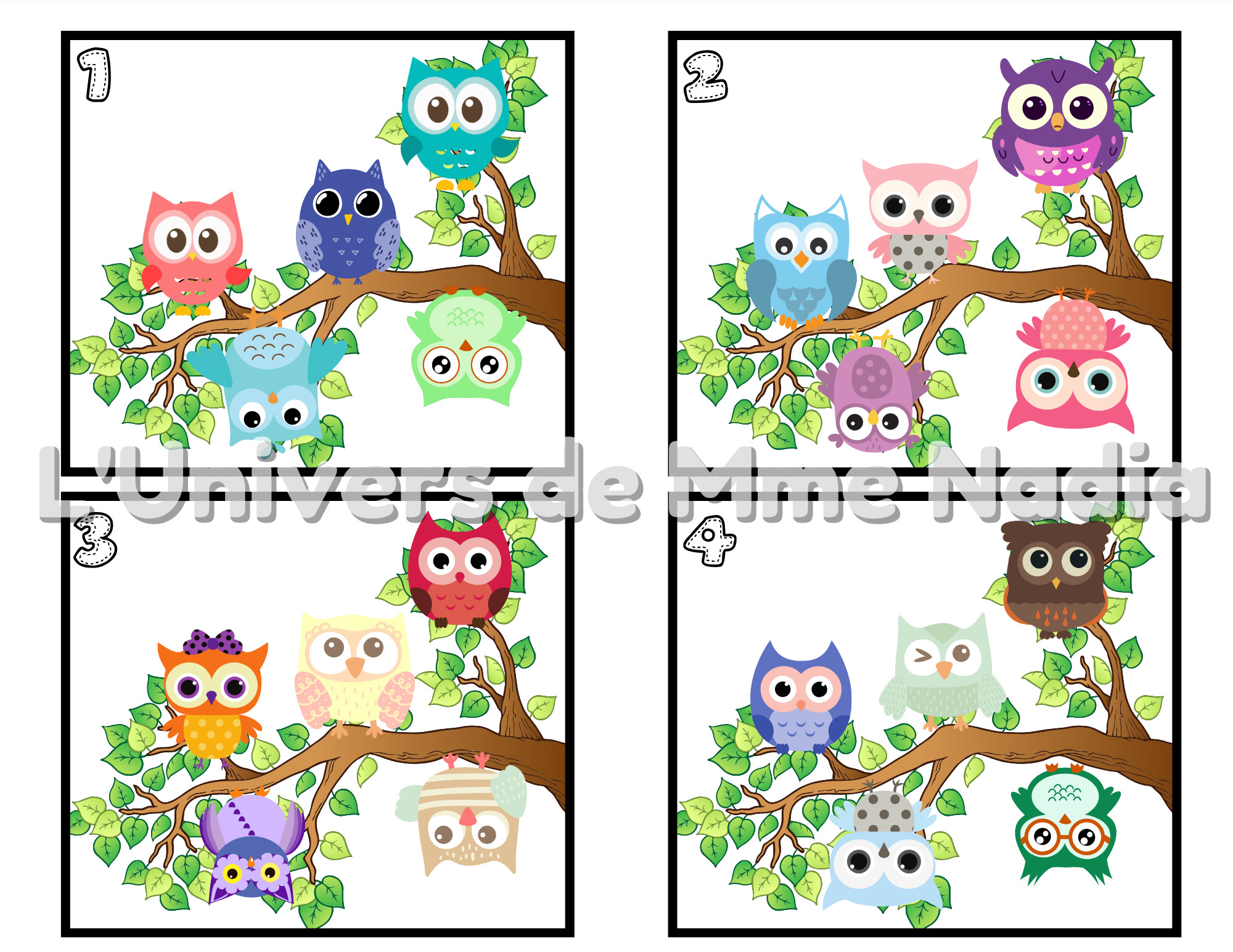 Ouvre grand les yeux, observe bien le modèle et replace chaque hibou exactement comme il faut. C'est un jeu de mémoire, d'observation et de logique. Prêt (e) à aider nos amis à plumes?? C'est parti!!