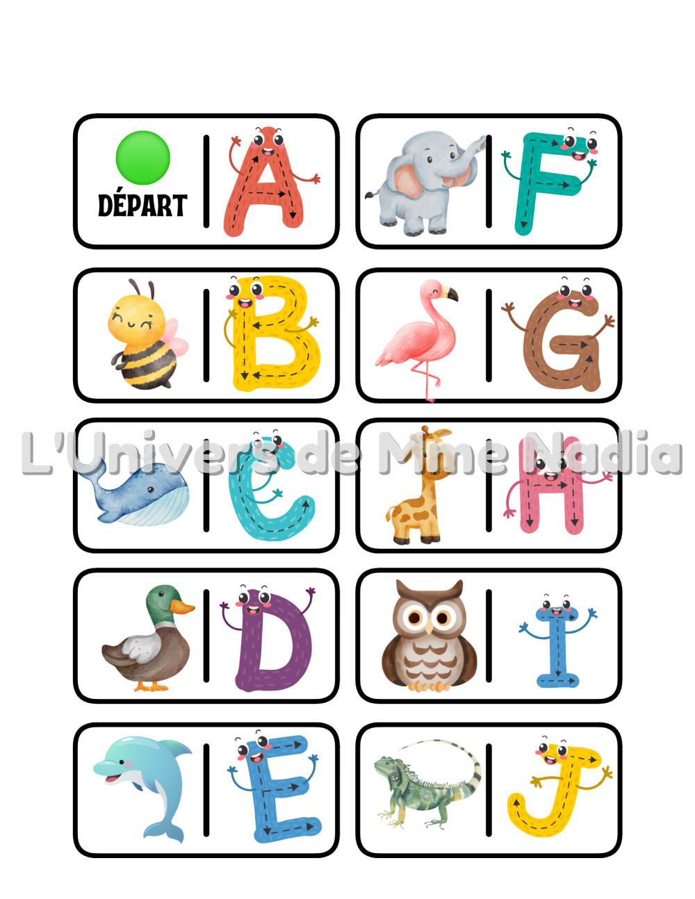 Les dominos de la lettre initiale est un jeu spécialement conçu pour aider les enfants à reconnaître les lettres de l'alphabet et les sons initiaux des mots tout en s’amusant.