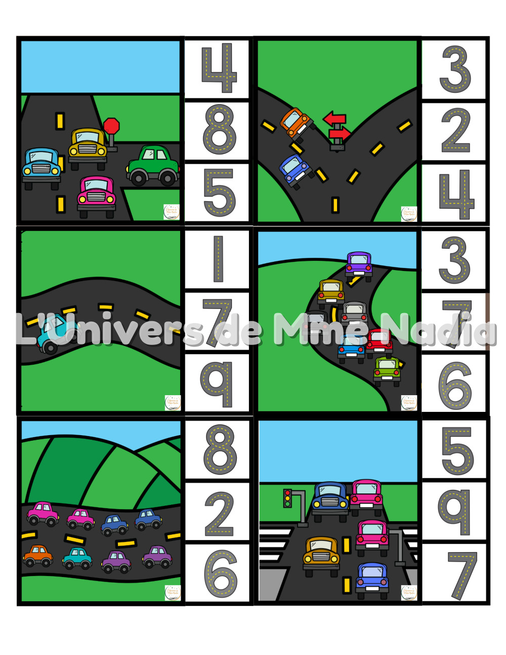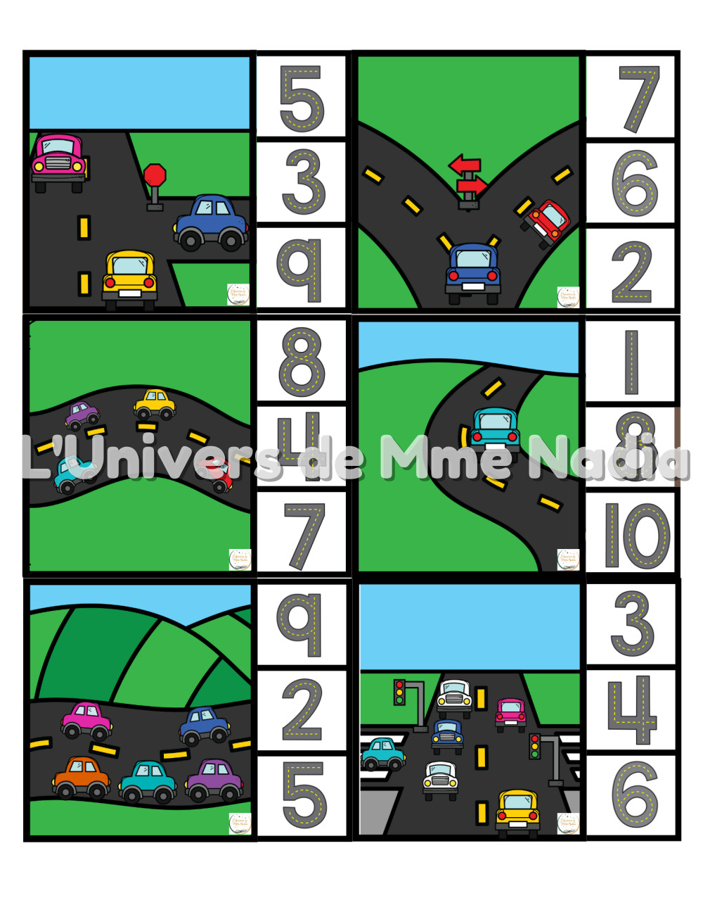 Sur la route - Cartes à pinces - Les nombres
