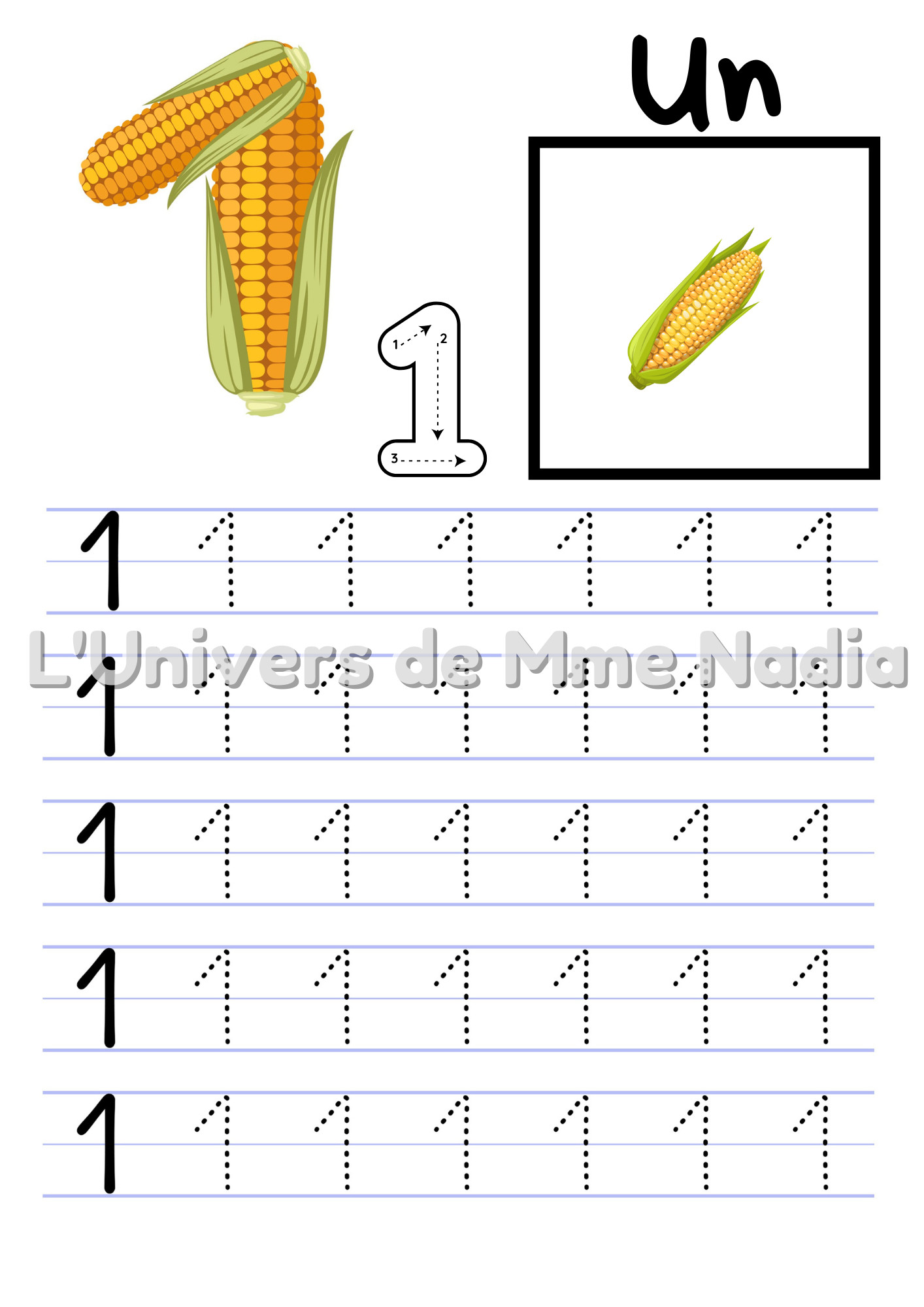 Les fiches de traçage des nombres pour les enfants d'âge préscolaire permettent de développer les compétences de pré-écriture et de grapho-motricité, d'apprendre et de comprendre la corrélation entre nombre et quantité. La tâche consiste à tracer soigneusement les nombres ligne par ligne