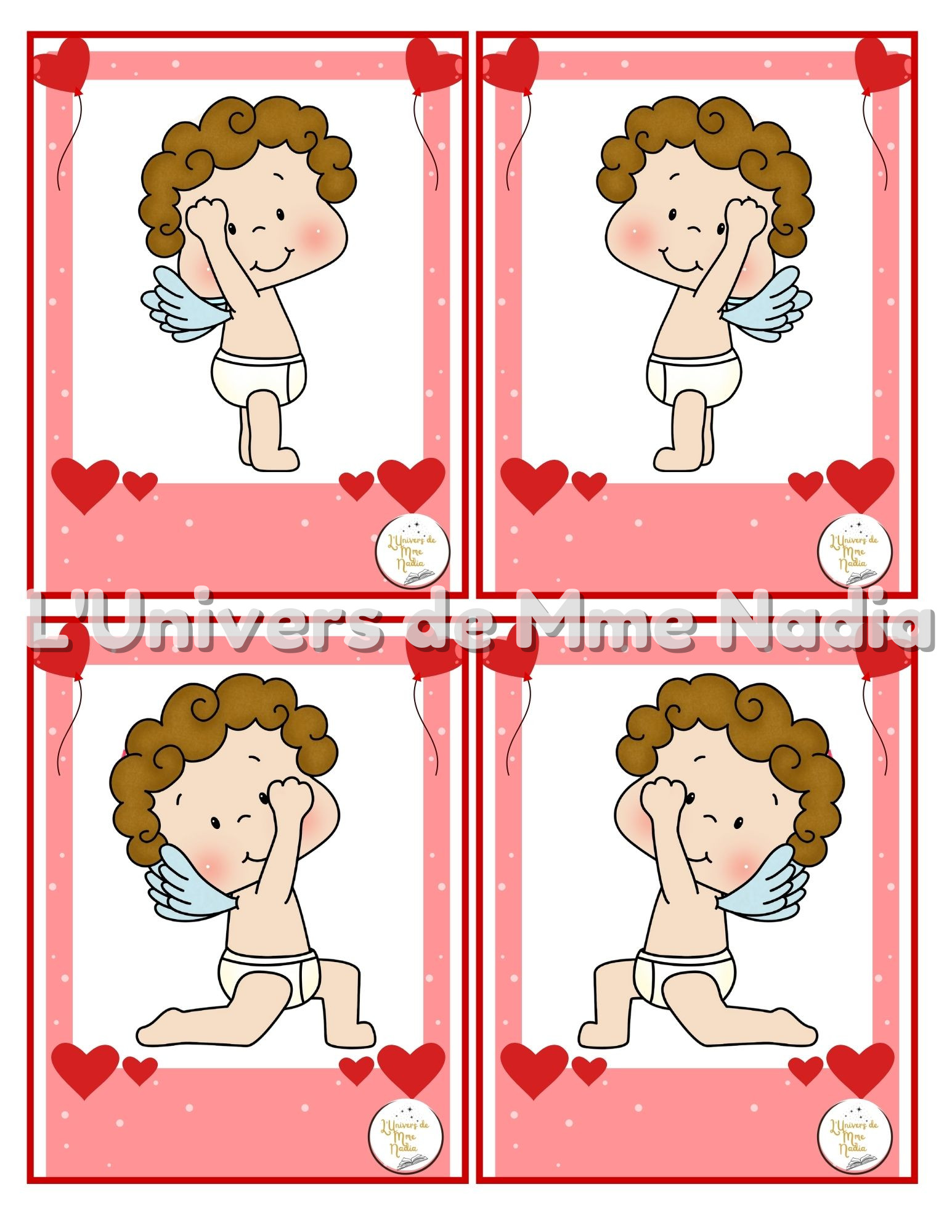 Voici un document de 12 séries de cartes de yoga à utiliser en thématique de la St-Valentin.
