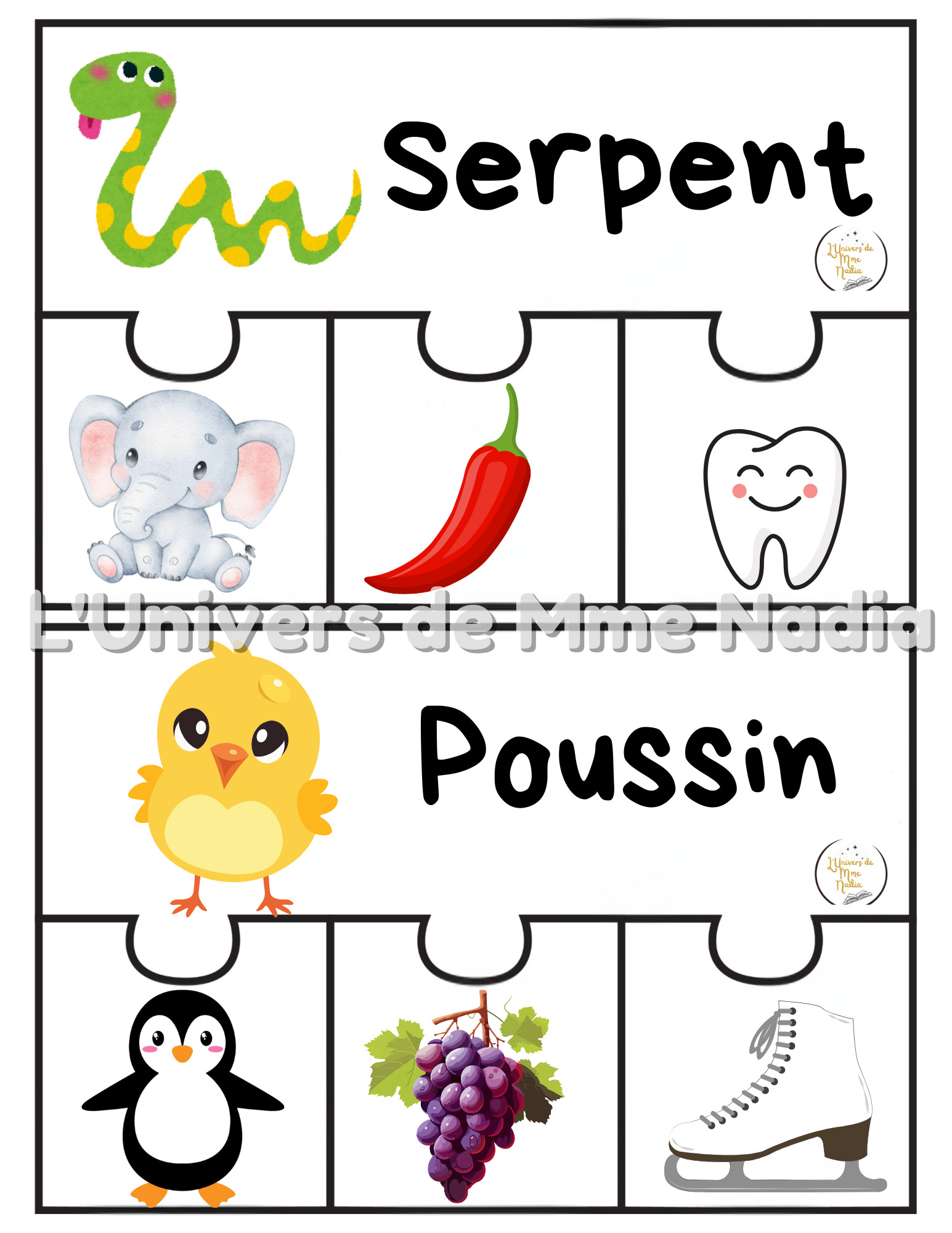 Cette activité de conscience phonologique est toute simple mais efficace. Elle comprend 36 casse-têtes à assembler pour travailler les rimes en s'amusant.