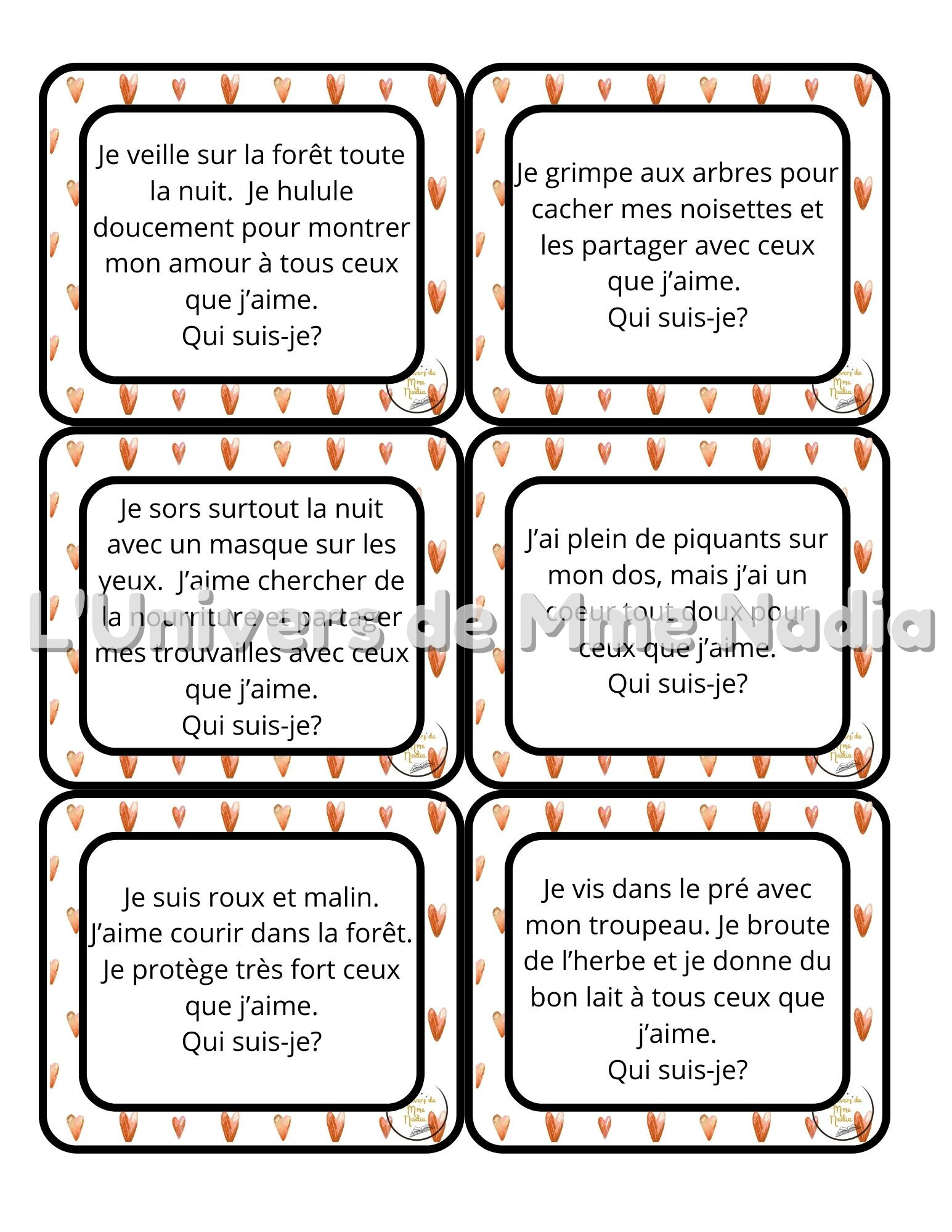 Besoin d'un petit jeu simple et amusant pour la semaine de la Saint-Valentin? J'ai créé un jeu de 18 devinettes pour faire deviner des animaux. Parfait pour s'amuser à l'école, en garderie ou à la maison! Chaque devinette est douce, amusante et inspirée de l'amour et l'amitié. Un beau moment à partager avec petits et grands.
