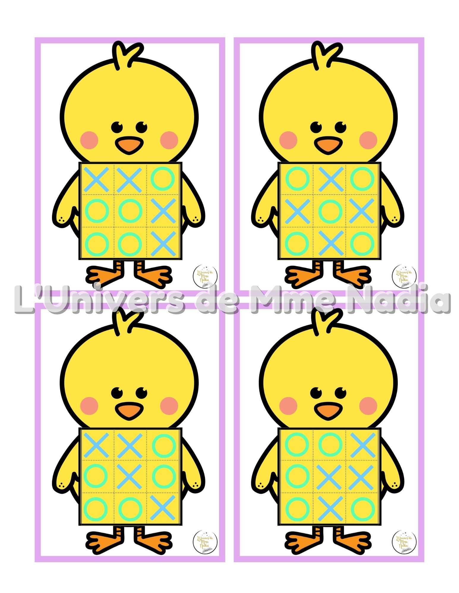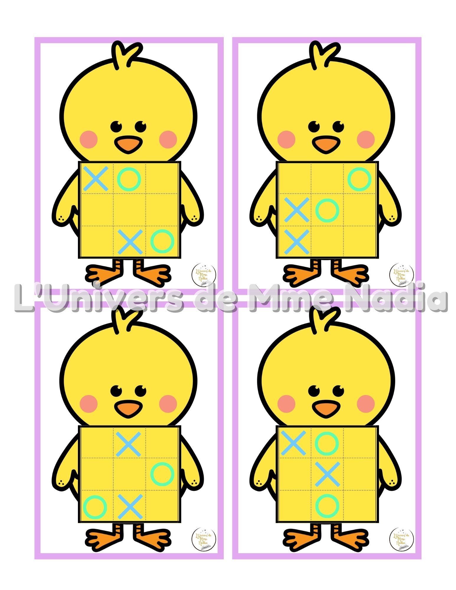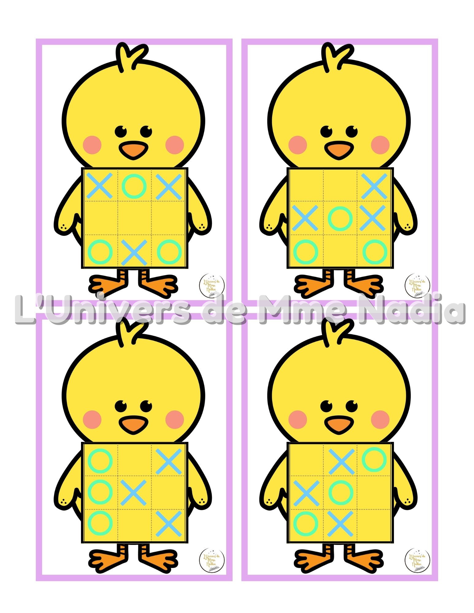 Vous préparez votre thème de Pâques ? Découvrez 20 fiches de jeux amusants qui accompagnent le poussin 🐥Tic-Tac-Toe acheté au Dollarama. Placez les X et les O au bon endroit en suivant le modèle proposé. Un excellent moyen de s'amuser tout en s'exerçant à la logique et à la concentration !