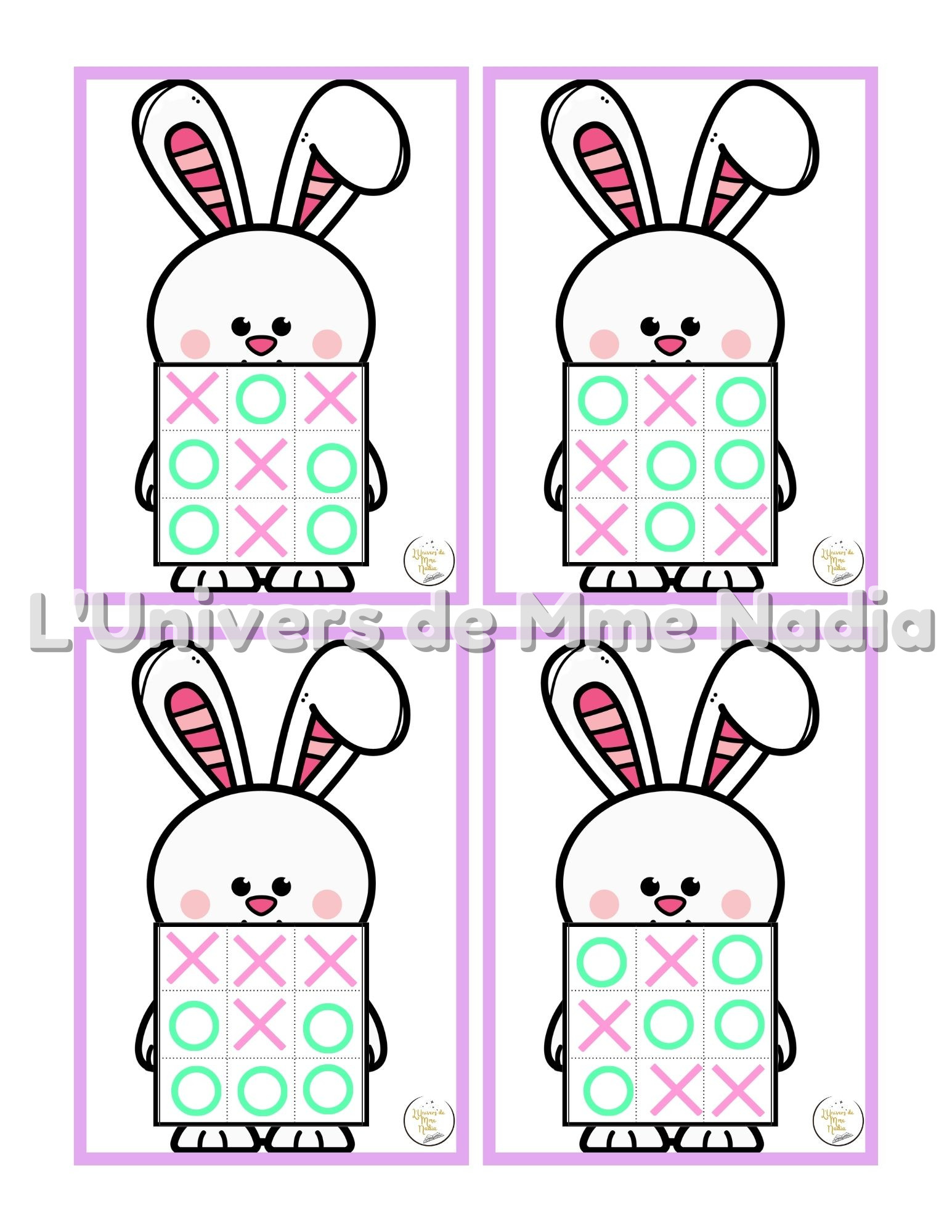 Vous préparez votre thème de Pâques ? Découvrez 20 fiches de jeux amusants qui accompagnent le Tic-Tac-Toe lapin de Pâques 🐰acheté au Dollarama. Placez les X et les O au bon endroit en suivant le modèle proposé. Un excellent moyen de s'amuser tout en s'exerçant à la logique et à la concentration !