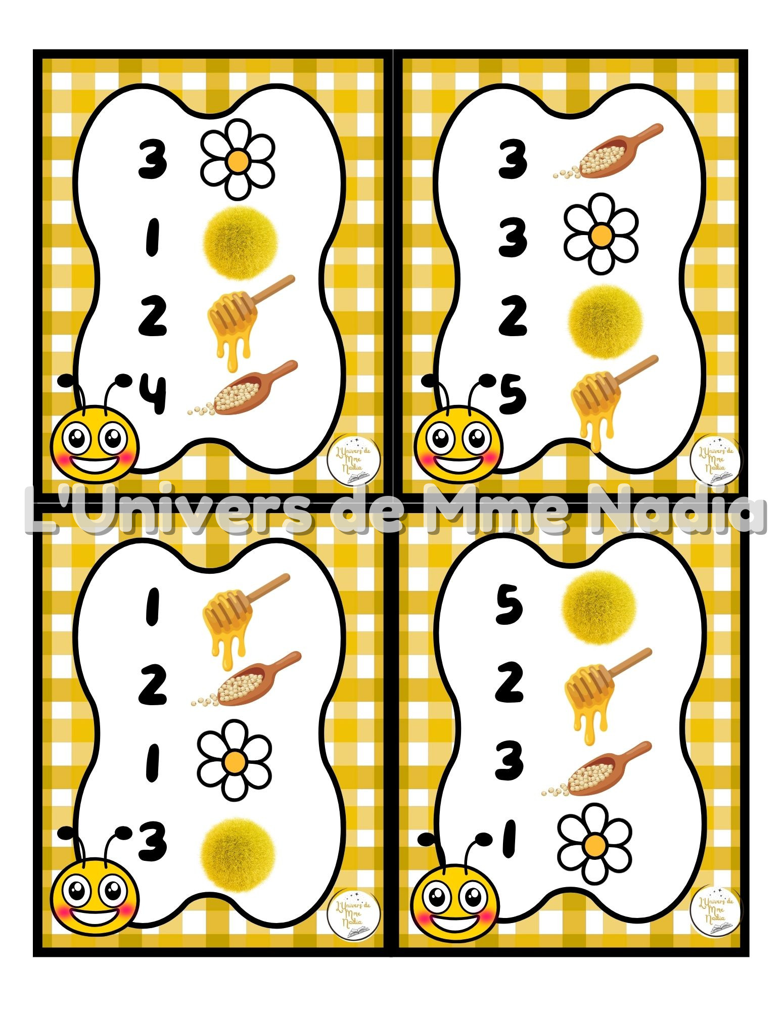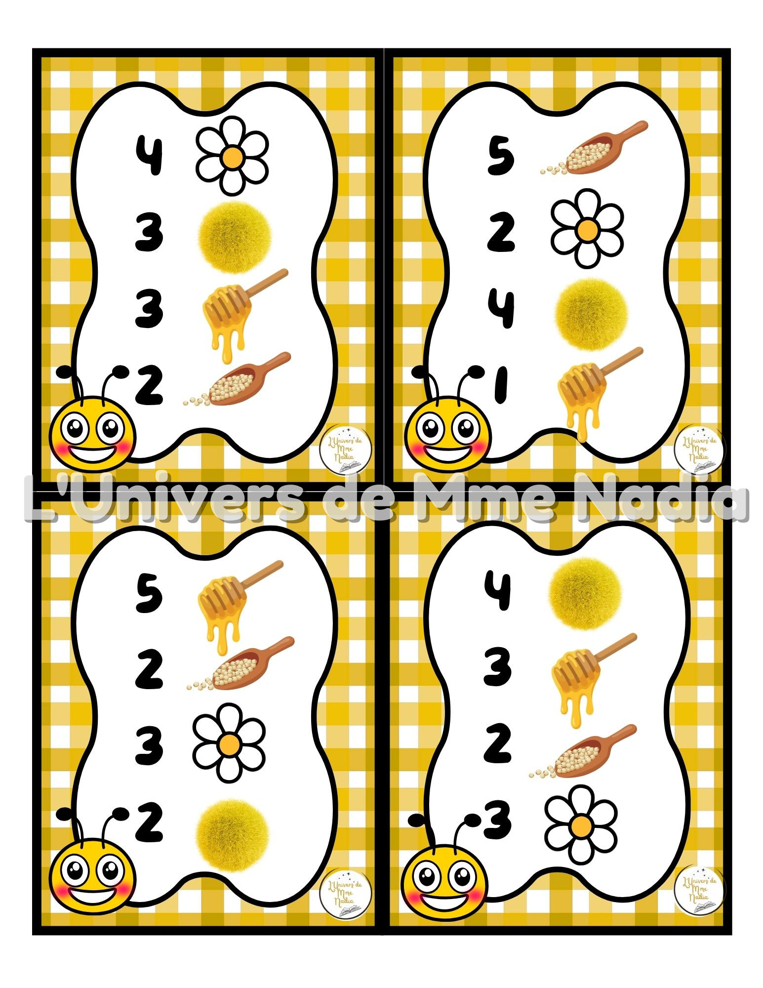 Abeille a faim est un jeu complémentaire au plateau J'ai faim, créé par Ébénisterie Steve Genesse. Le jeu comprend 1 tête d'abeille, 15 fleurs et 15 sucettes de miel et 32 petits menus conçus pour nourrir l'abeille de façon ludique et éducative. Chaque carte propose un menu à réaliser avec différents éléments : • des marguerites, • des sucettes de miel, des pompons, • et la possibilité d'ajouter des cuillères de mélange sensoriel. Les enfants sont invités à : • choisir le bon ingrédient, • mettre la bonne quantité, • et suivre les consignes du menu. Ce jeu permet de travailler les quantités, l'association, l'attention et la motricité fine, tout en ajoutant une dimension sensorielle et amusante. Avec ses 32 cartes toutes différentes, Abeille a faim offre une belle variété de défis pour enrichir l'utilisation du plateau J'ai faim.