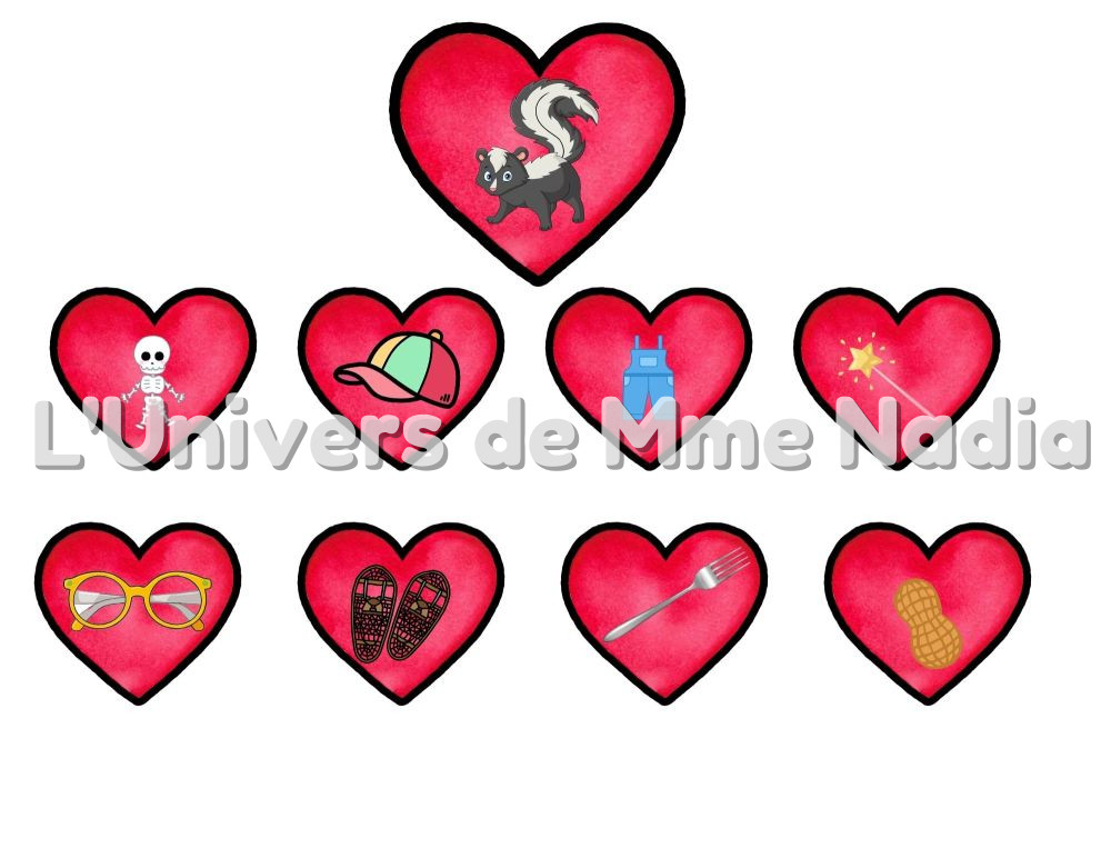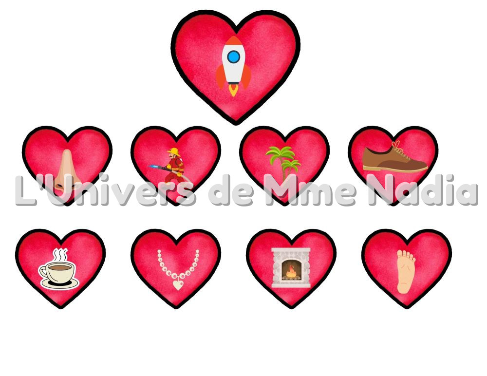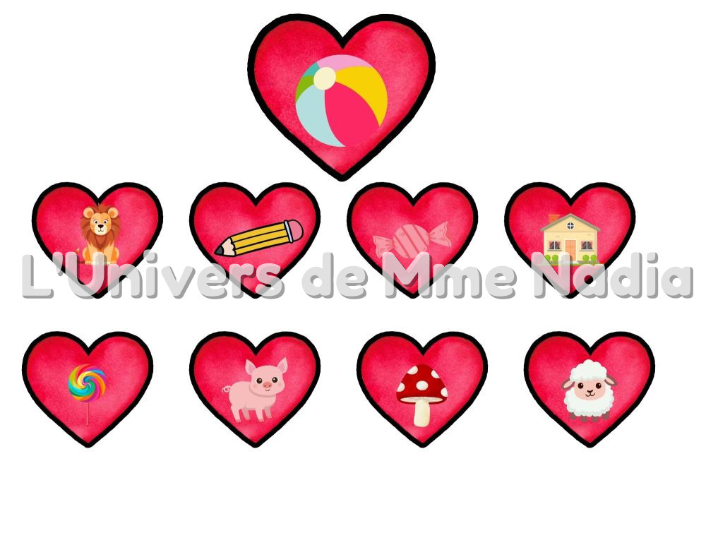 • Plus de 80 petits cœurs à associer selon les rimes