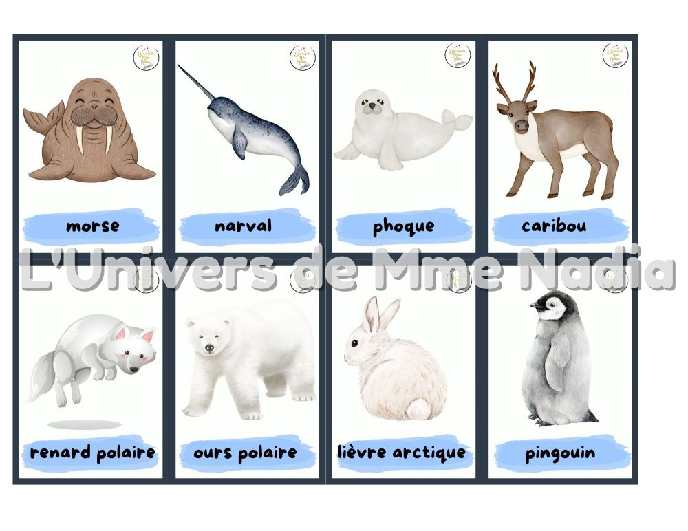 Ce document comprend 58 mots étiquettes sur le thème du monde polaire et de l'hiver, présentés en double exemplaire : la version standard et la version en ombre, pour un total de 116 cartes. Ces cartes sont parfaites pour :