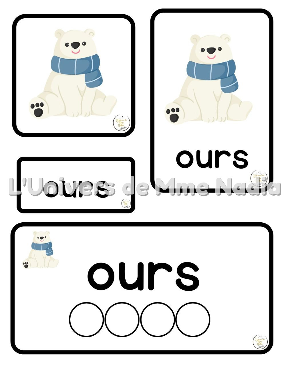 • Une carte pour associer uniquement l'image au bon mot;